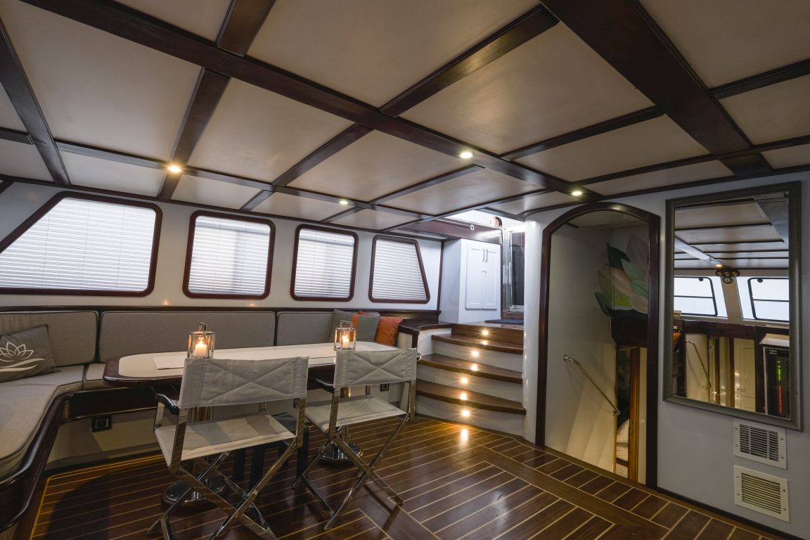 | La M/S Lotus è stata costruita nel 1996. Grazie alla ristrutturazione effettuata nel 2021, ha raggiunto le sue attuali condizioni moderne. L'imbarcazione, lunga 26 metri e larga 6 metri, offre servizi di crociera blu ai nostri stimati ospiti con un equipaggio di 4 persone. Il nostro yacht dispone di un totale di 5 cabine, di cui 2 cabine armatoriali e 3 cabine doppie, tutte eleganti e confortevoli,
