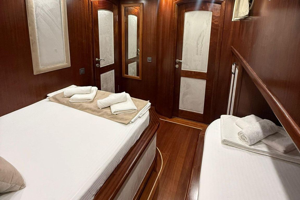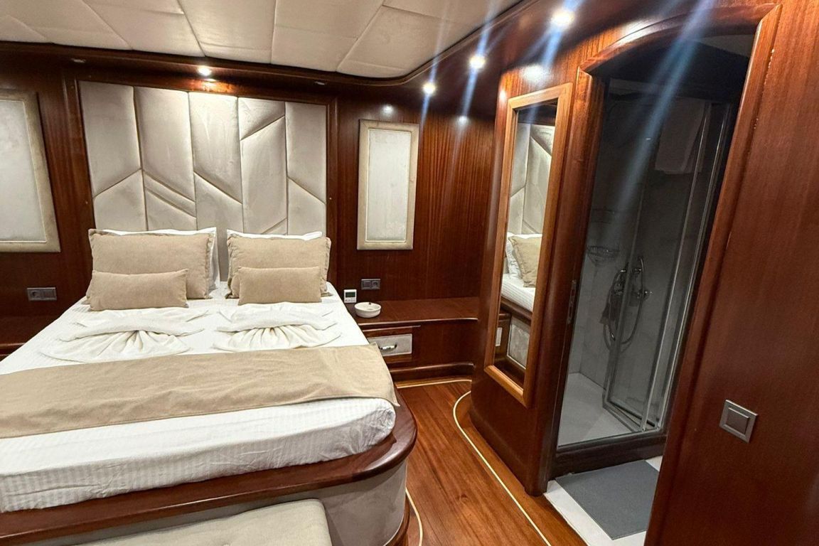 Mare Magico è un caicco di 24 metri progettato per offrire un’eccezionale esperienza di noleggio privato lungo la costa turca. Con 5 cabine (2 Master, 1 Double e 2 Triple) per un massimo di 12 ospiti, è una scelta ideale per famiglie e gruppi in cerca di comfort, spazio e una vacanza Blue Cruise di alto livello in Turchia. Ogni cabina dispone di aria condizionata, bagno privato e arredi eleganti per un soggiorno rilassante.
