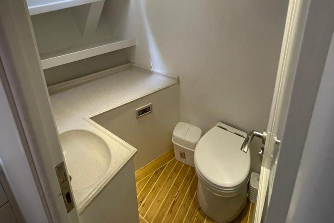 | Fino a 12 ospiti; 3 cabine matrimoniali, 2 cabine doppie con letti singoli, aria condizionata, doccia, lavabo, acqua calda, WC, asciugacapelli, lenzuola, cuscini e federe, cassetti, armadio, riscaldamento, cabine separate per l'equipaggio. |