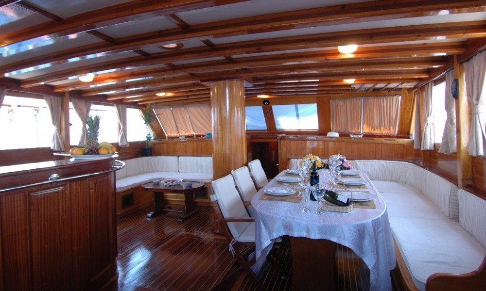 | Il caicco Halil Aga 3 è un ketch di 30 metri, costruito nel 1999 e rinnovato nel 2016. Dispone di sette cabine — tre matrimoniali e quattro triple — con una capacità massima di 18 ospiti in acque turche (12 all’estero). Ogni cabina è dotata di bagno privato e aria condizionata, disponibile tra le 6:00 e le 20:00. Il ponte offre comode sedute, aree pranzo ombreggiate e ampi spazi per prendere il sole. Il salone interno è spazioso e comprende sala da pranzo e bar. Per lo sport e il divertimento, Halil Aga 3 è equipaggiato con canoe, windsurf, SUP paddleboard, scooter marini, attrezzatura da immersione, snorkeling e pesca. La barca è alimentata da un motore Delphin da 360 HP e da due generatori da 20 + 27,5 kW, con una velocità di crociera di 9 nodi. È una scelta professionale che combina spazio, comfort e una vasta gamma di attività acquatiche. |