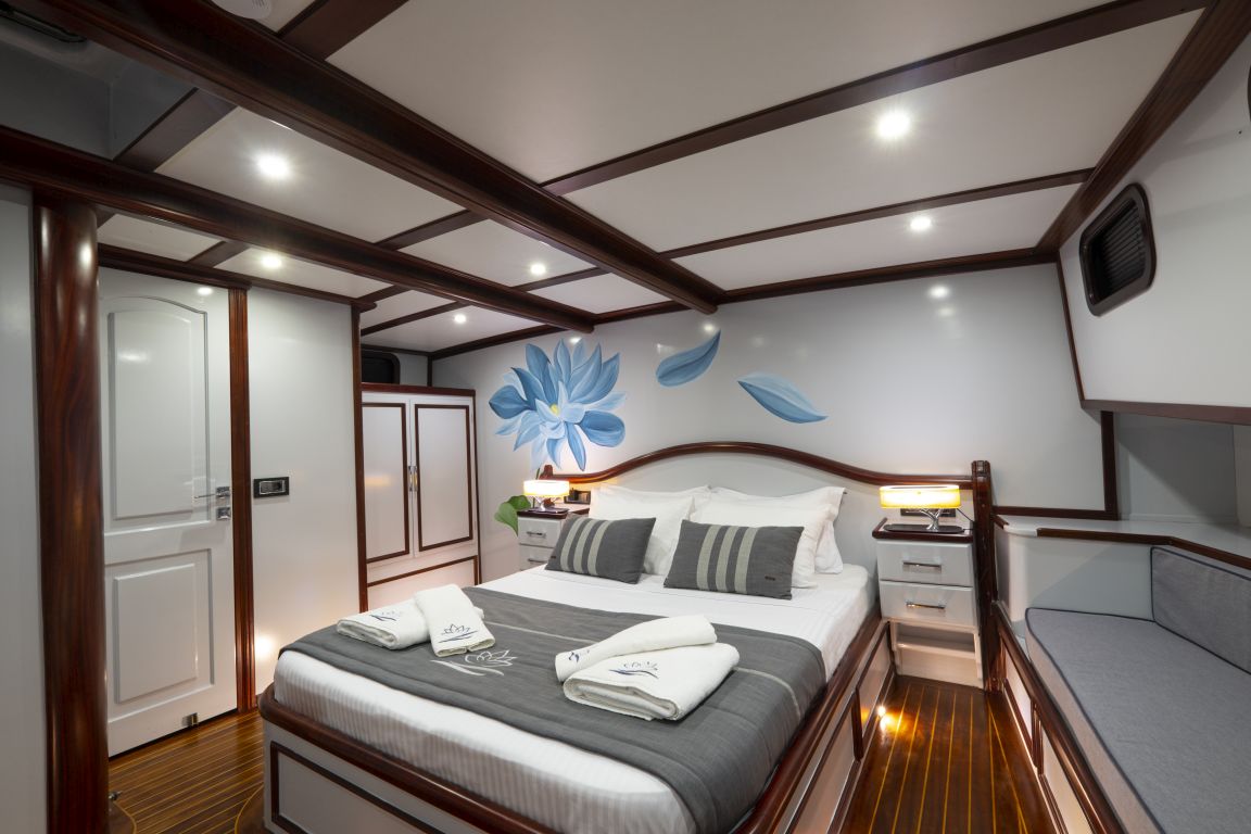 | La M/S Lotus è stata costruita nel 1996. Grazie alla ristrutturazione effettuata nel 2021, ha raggiunto le sue attuali condizioni moderne. L'imbarcazione, lunga 26 metri e larga 6 metri, offre servizi di crociera blu ai nostri stimati ospiti con un equipaggio di 4 persone. Il nostro yacht dispone di un totale di 5 cabine, di cui 2 cabine armatoriali e 3 cabine doppie, tutte eleganti e confortevoli,