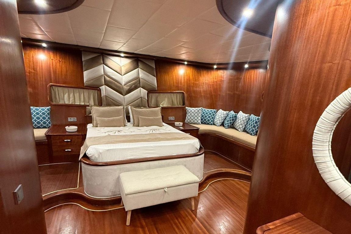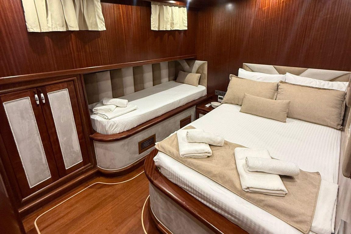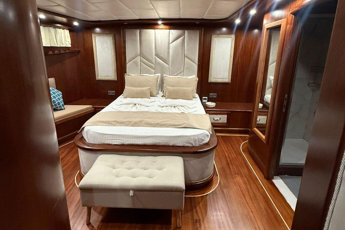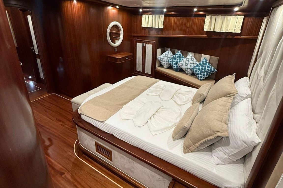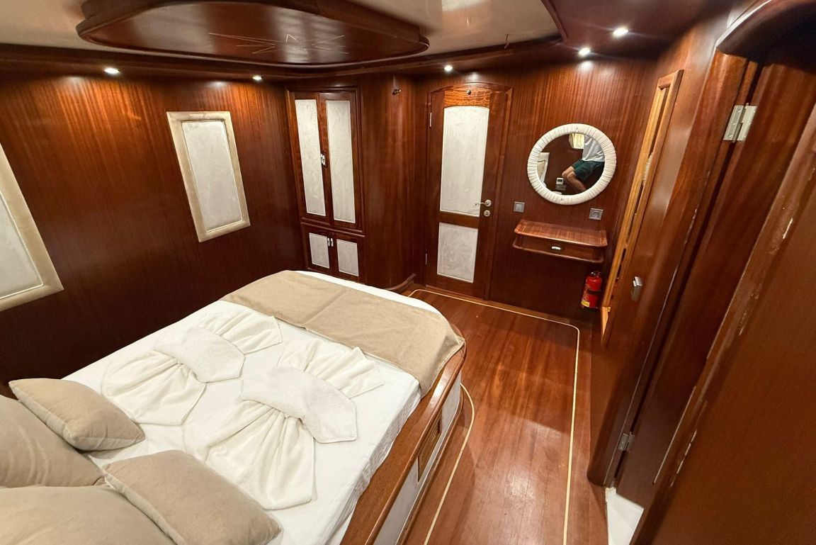 Mare Magico è un caicco di 24 metri progettato per offrire un’eccezionale esperienza di noleggio privato lungo la costa turca. Con 5 cabine (2 Master, 1 Double e 2 Triple) per un massimo di 12 ospiti, è una scelta ideale per famiglie e gruppi in cerca di comfort, spazio e una vacanza Blue Cruise di alto livello in Turchia. Ogni cabina dispone di aria condizionata, bagno privato e arredi eleganti per un soggiorno rilassante.