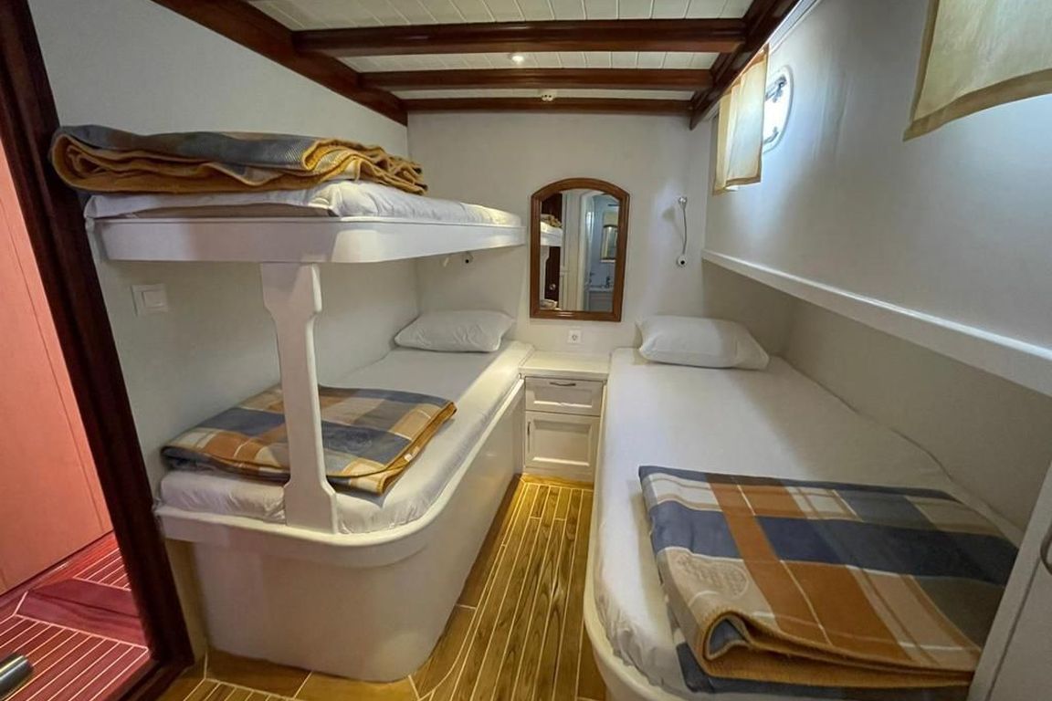 | Pam è un confortevole e ben progettato gulet, che offre un’esperienza rilassante di noleggio gulet privato lungo le splendide coste della Turchia. Grazie ai suoi spazi ampi e al design elegante, questo yacht è ideale per gli ospiti che desiderano vivere una classica vacanza Blue Cruise in Turchia con comfort e stile. Dotato di diverse cabine ben arredate con aria condizionata e bagno privato, Pam garantisce un soggiorno piacevole e rilassante per famiglie e piccoli gruppi durante tutto il viaggio. Gli interni di Pam includono un salone accogliente e funzionale con comode aree relax, perfette per rilassarsi durante il giorno o trascorrere del tempo con il proprio gruppo. Gli spazi esterni sono progettati per offrire il massimo piacere in mare: il ponte di poppa dispone di un tavolo da pranzo con area ombreggiata per gustare deliziosi pasti, mentre il ponte di prua offre comodi materassi prendisole dove gli ospiti possono rilassarsi e godersi il sole del Mediterraneo. Per gli ospiti che preferiscono un’esperienza attiva di yacht charter in Turchia, Pam offre diversi water toys come canoa, attrezzatura per snorkeling e altre attività divertenti, permettendo di esplorare baie cristalline e calette nascoste. Lo yacht è inoltre dotato di moderni sistemi di navigazione e comodi spazi sul ponte, garantendo sicurezza e comfort durante la crociera. Un equipaggio professionale e cordiale è a bordo per offrire un servizio di alta qualità durante tutto il viaggio, occupandosi della navigazione, del servizio quotidiano e della preparazione di pasti freschi. Navigando lungo le splendide coste di Bodrum, Göcek, Fethiye e Marmaris, Pam combina comfort, semplicità e il fascino tradizionale del gulet, rendendolo una scelta eccellente per chi cerca un’esperienza di luxury gulet charter in Turchia rilassante e piacevole. |